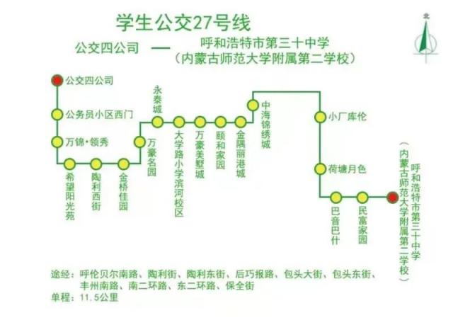 为进一步方便呼和浩特市第三十中学(内蒙古师范大学附属第二学校)师生出行,公交总公司与教育局、道交委认真勘察对接,定于4月29日放学时间开通学生专线27号线、29号线,4月30日放学时间开通学生专线28号线。