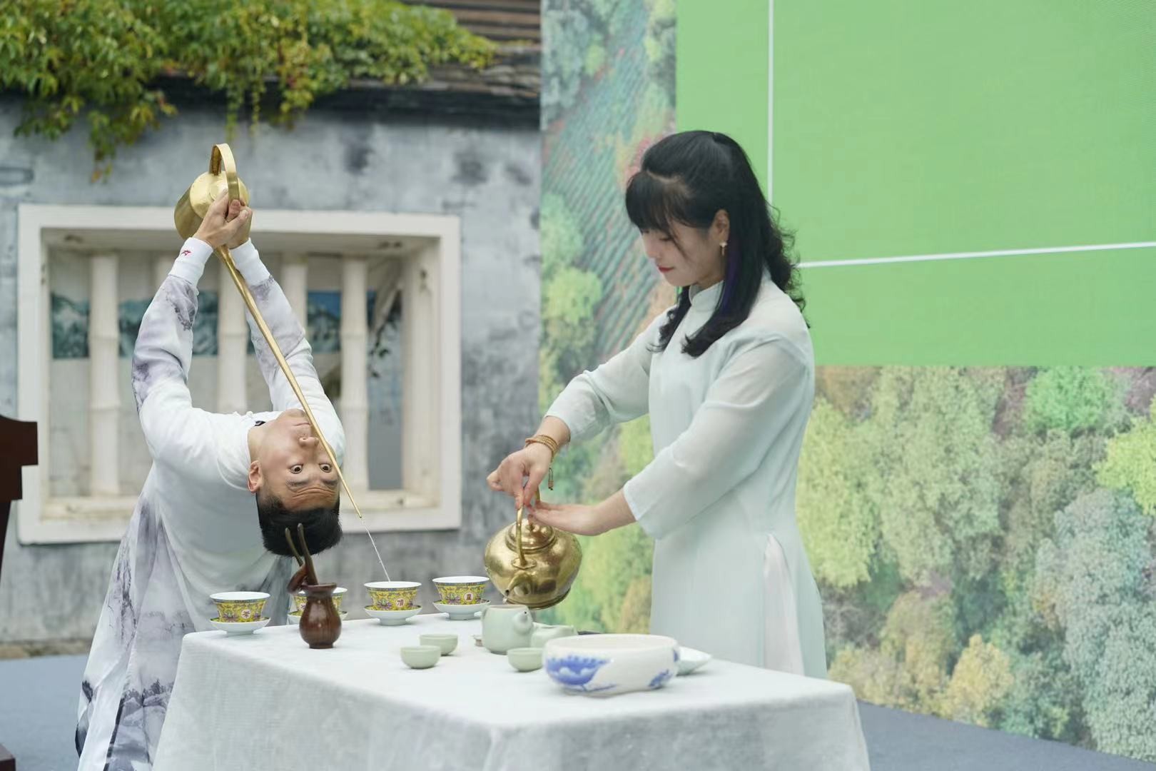 抬手一变,转身一变,掌声雷动间隙脸再变!30秒钟之间,近十张脸谱的频繁切换,让在场观众感受了一场精彩绝伦的川剧变脸,频频感叹四川传统文化的独特魅力。随着热情的蔓延,一场以“萌宠”风为主题的熊猫快闪表演让现场气氛活跃起来,让大熊猫这一四川文旅名片更加生动有趣,成为焦点。