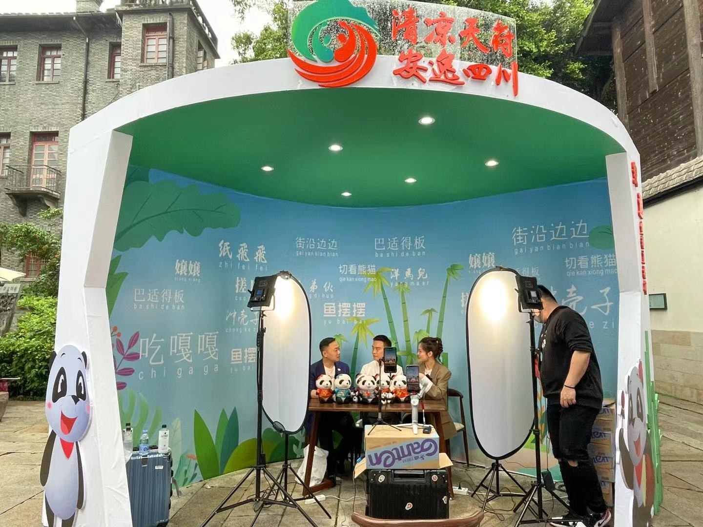 作为“行走”的展区,以吉祥物“安逸”熊猫为主题的安逸直播间在福州三坊七巷停留。在这里,雅安蒙顶山茶、巴中黄羊肉、宜宾特色竹文创、凉山民族风漆器等特色文旅产品悉数亮相,甘孜州、广元市、乐山市、南充市、广安市等地旅游优惠政策也扎堆推送。