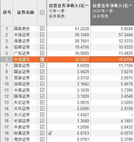 对比去年同期数据可以看出,国泰君安、海通证券、招商证券、广发证券自营业务均比去年同期表现更好,而中信证券、中信建投、东北证券、浙商证券该项业务均有所下滑。