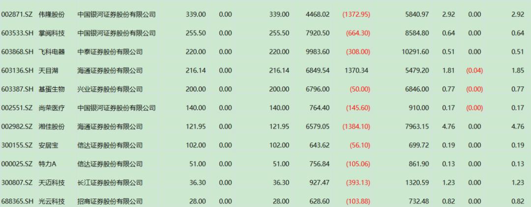 在券商重仓个中,不乏ST股及*ST股,民生证券、东方证券均对*ST康盛、*ST米奥大幅减持,减持市值分别是2650万元、1277万元。令人惊喜的是,国海证券持有ST永泰4.12亿股,持仓期内盈利3712万元,东吴证券持有*ST蓝丰468万股,期内赚取243万元。