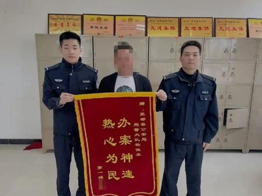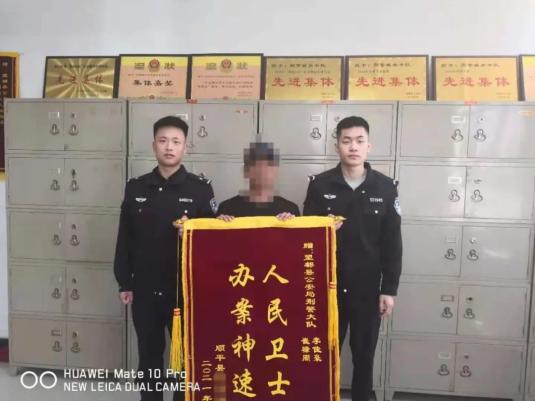 为表示感谢,4月28日上午,刘先生制作了一面写有“人民卫士 办案神速”的锦旗送到办案民警手中。