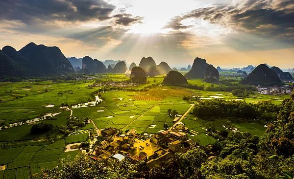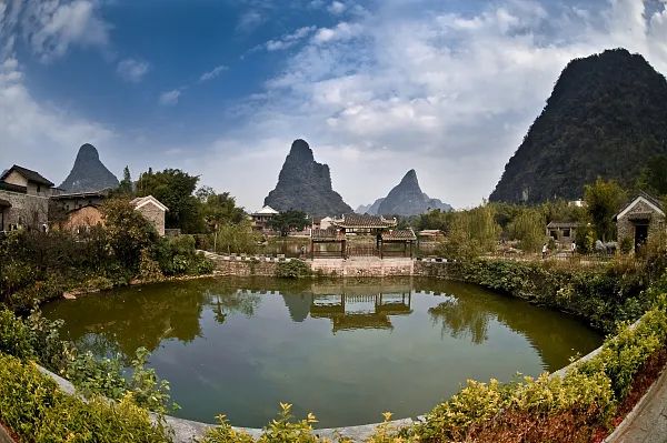 兴坪古镇,距阳朔县城25公里,20元人民币的背面图景就是在兴坪。古镇城墙轮廓尚清,随处可见古砖瓦陶瓷残片,呈现出一派青山幽幽、村舍几座的幽静氛围。