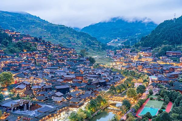 西江千户苗寨位于贵州省雷山县东北部,是一个保存苗族“原始生态”文化完整的地方。由10余个依山而建的自然村寨相连成片,是目前中国乃至全世界最大的苗族聚居村寨。鳞次栉比的木屋,层层叠叠,繁而不乱,聚而有序,格外惊艳。