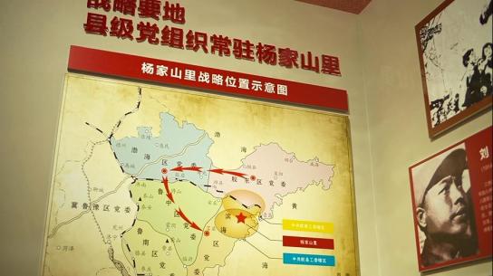 二、“中流砥柱 使命担当”这一部分展示了杨家山里战略位置示意图,杨家山里地处胶东、滨海两大战略区的结合部,当时五个县级党组织先后常驻杨家山里,杨家山里也成为远近闻名的革命摇篮。