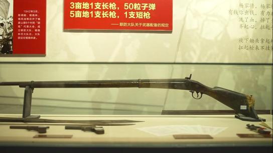 (杨凌波,杨家山里地区第一名党员,也是展厅的提名者。)此外,还展出了当时杨家山里抗日武装使用过的各式武器。