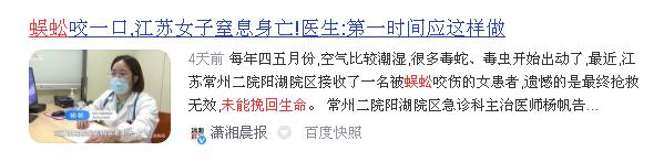 近日,江苏常州二院阳湖院区接收了一名被蜈蚣咬伤的女患者,遗憾的是抢救无效,未能挽回生命。