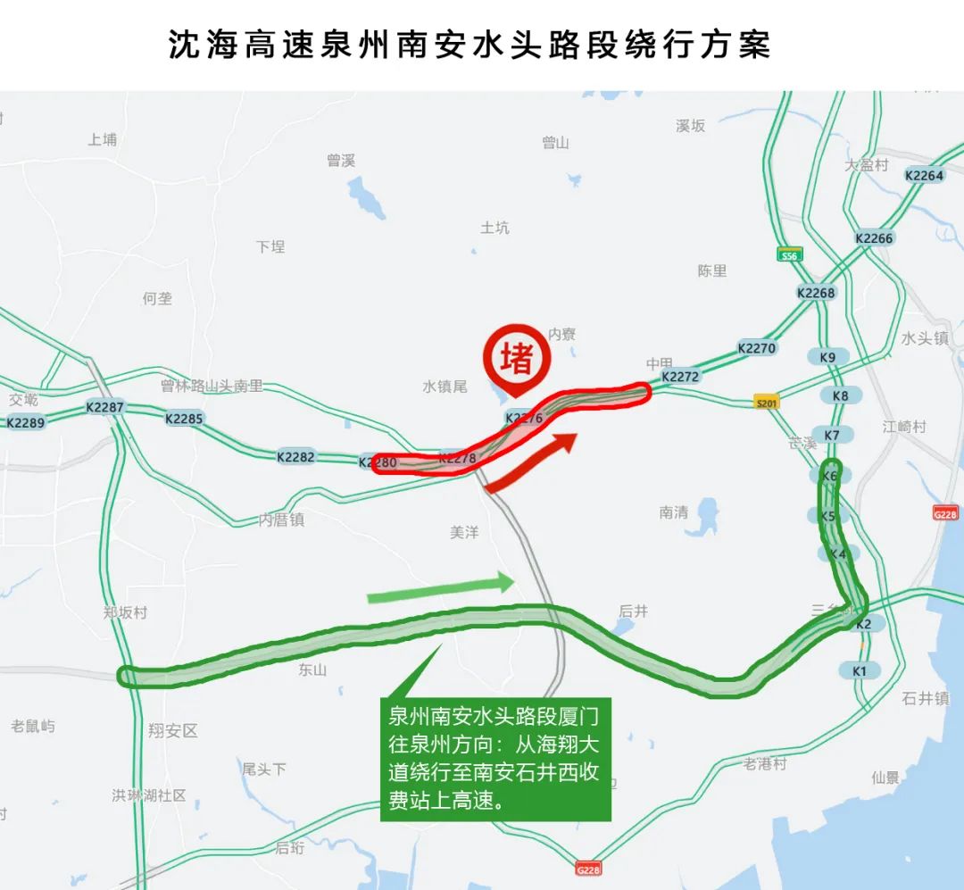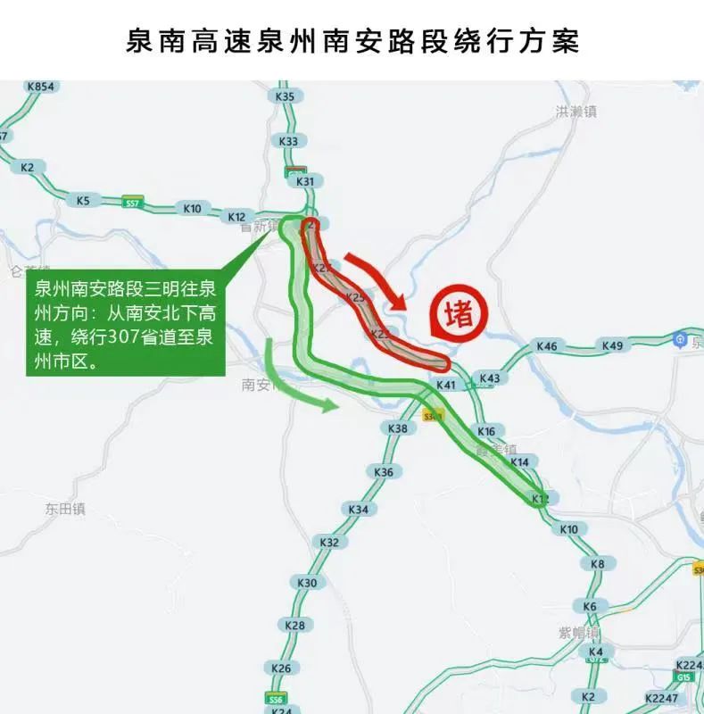 绕行线路:从南安北下高速,绕行307省道至泉州市区。7