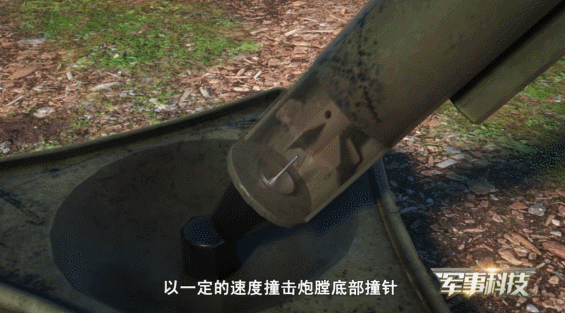 迫击炮炮弹由炮口装填,依靠炮弹自身的重力下滑,以一定的速度撞击炮膛底部撞针而使底火发火,点燃发射药将迫击炮弹推出炮口,其名称“迫击”即由此得名。