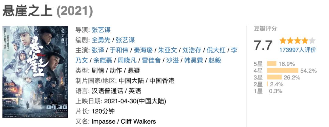 有人评论说:「张艺谋这是拍了个《悬崖之(上)》,怕不是还有《悬崖之(下)》?」