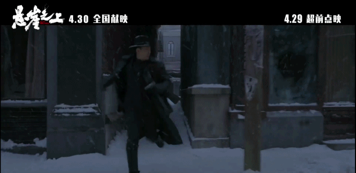 从画面上看,四下白茫茫一片,人物在两栋建筑间的逼仄空间内奔跑,完美营造出了命悬一线的感觉。