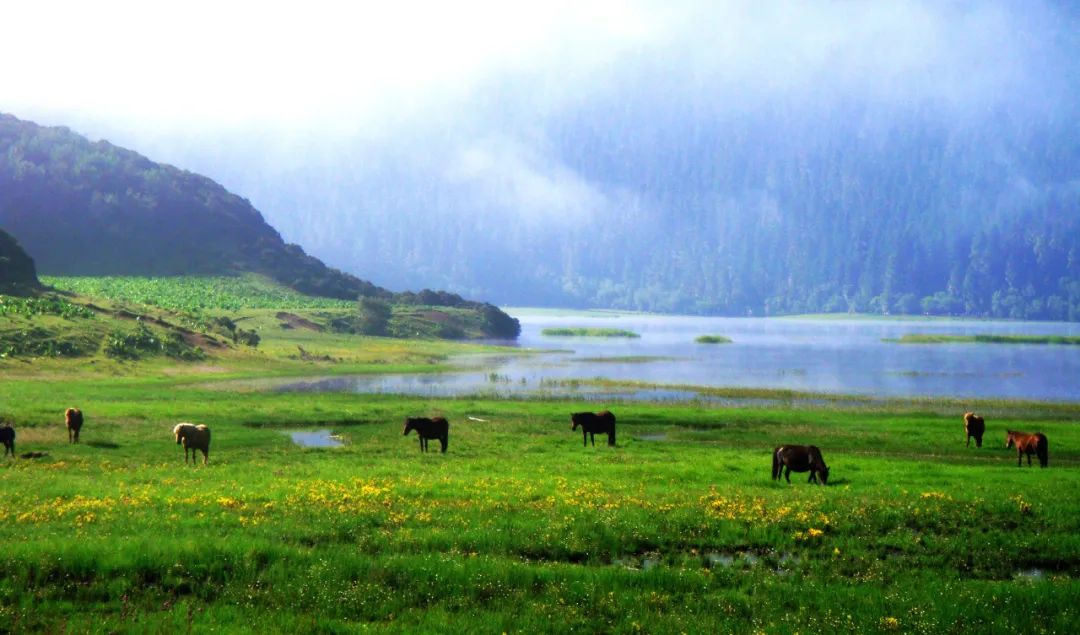 北海湿地北海湿地是云南省唯一的国家湿地保护区。北海湿地保护区四面环山,属高原火山堰塞湖生态系统。历年的草根盘结而成的草排漂在水上,还有生长在草排上的北海兰、苇席草和许多叫不出名的野草野花。