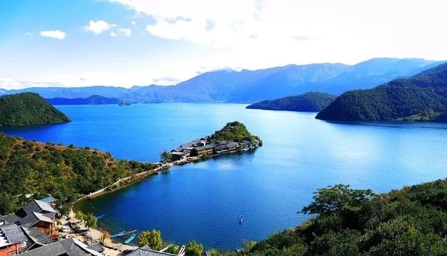 泸沽湖泸沽湖不仅水清,而且岛美,四周青山环抱,湖岸曲折多湾。湖中散布5个全岛、3个半岛、1个海堤连岛,其中黑瓦吾岛、里无比岛和里格岛是泸沽湖最具观赏和游览价值的三个景点,被誉为“蓬莱三岛”。