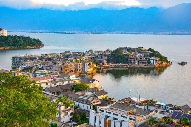 双廊古镇双廊古镇,以双廊村、大建旁村为核心景区,是一个典型的白族渔村古镇。古镇依山傍水,风光旖旎,白族渔村风貌保存完好,素有“苍洱风光第一镇”的美誉。