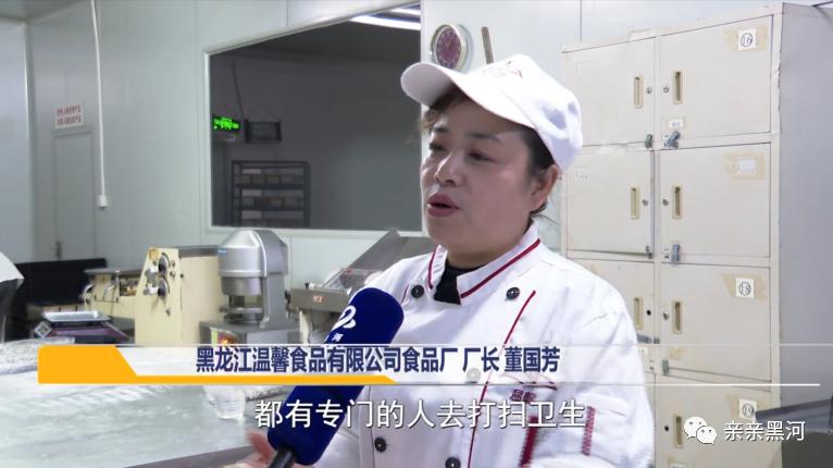 黑龙江温馨食品有限公司食品厂 厂长 董国芳:我们的环境和我们的工区,都有专门的人去打扫卫生,包括我们的案台,我们的工装,每天都会定时的去进行消毒,就为了保证咱们的产品的质量卫生,还有安全食品这一块。