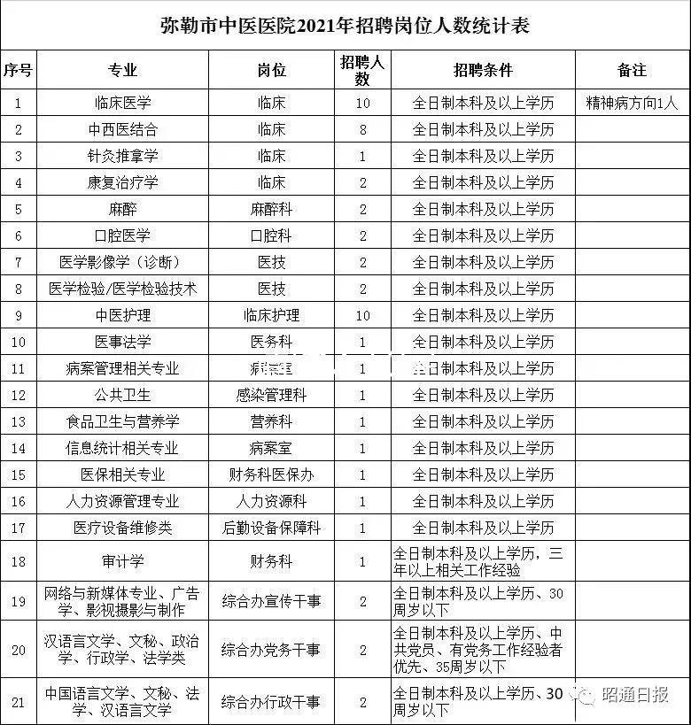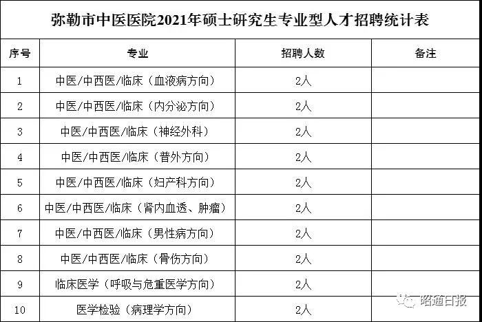 弥勒市中医医院2021年人才公开招聘公告