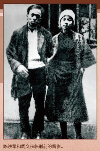 1927年10月,陈铁军受党的派遣,与周文雍假扮夫妻,准备广州起义。在共同进行革命斗争的过程中,周文雍和陈铁军产生了爱情。但为了革命事业,他们将爱情一直埋藏在心底。1928年1月,由于叛徒出卖,周文雍与陈铁军同时被捕。在狱中,他们备受酷刑,坚贞不屈。生命的最后时刻,周文雍和陈铁军决定将埋藏在心底的爱情公布于众,在敌人的刑场上举行了革命者婚礼,从而表现了大无畏的英雄气概。“正是革命到了紧急关头,才需要不怕危险的人。为大众的幸福而被杀头,也就是我的幸福。