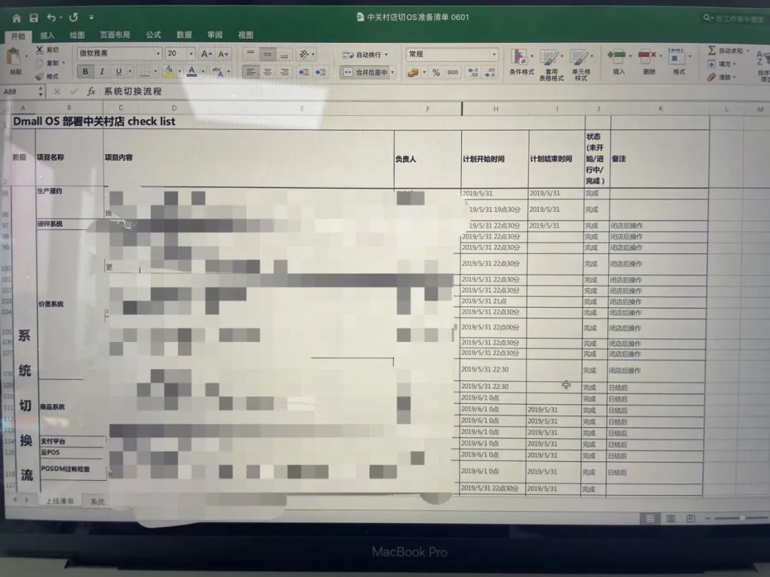 当时负责统筹系统迁移的项目经理是洪楚贤,她特意给我找出了当年的项目实施表格,上面密密麻麻有100多项动作,这些动作都要在一夜之间做完,就像在追光下跳一支华丽连贯的舞蹈。