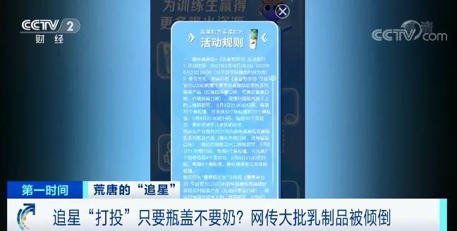 粉丝们疯狂“打投”,购买了大量的奶制品却根本消化不掉,再加上奶制品保质期短,喝不完又转卖不掉,就只能倒掉,于是就出现了“只要瓶盖、不要牛奶”的荒诞一幕。2