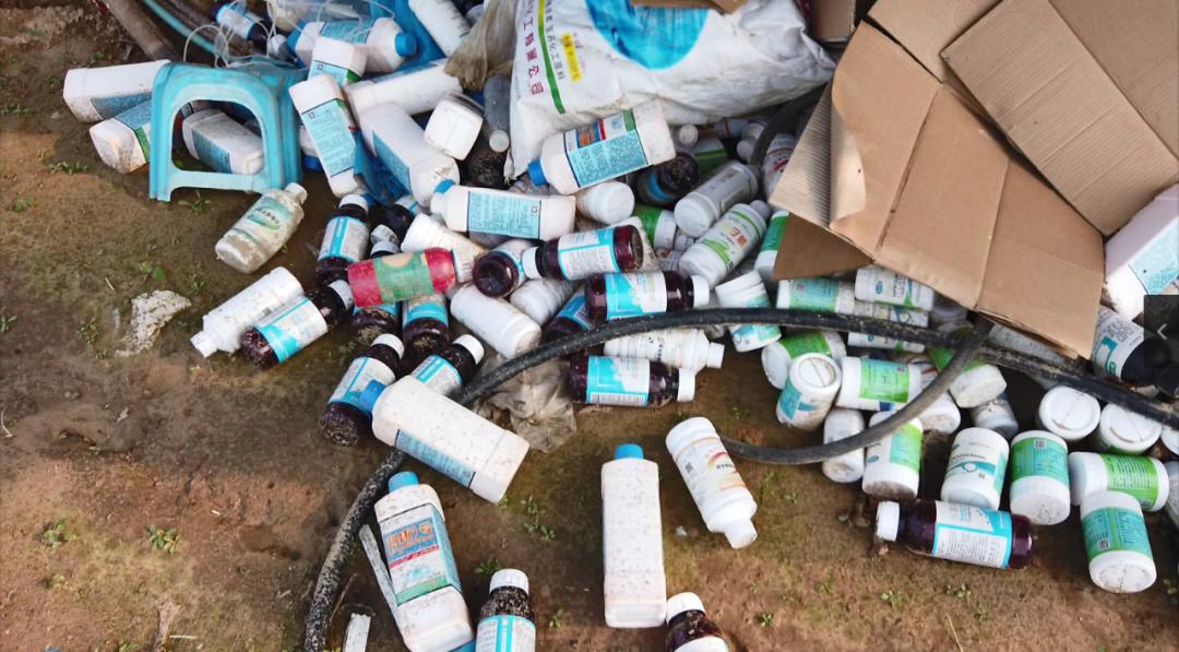 此外,现场督察发现,水产养殖使用过的药品废弃空瓶随意堆积在保护区核心区内。另据介绍,这1300亩鱼塘平均每年消耗鱼饲料约2183吨,各类水产养殖用药近3000公斤,与湿地保护背道而驰。