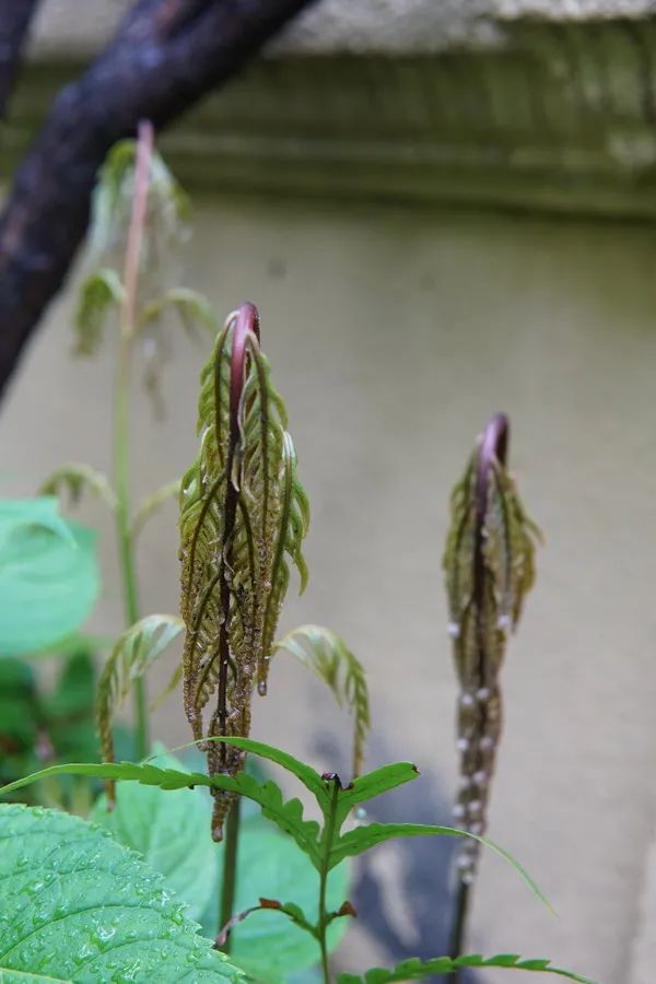 早春的观叶植物太多了,只要是新叶都好看。能够保持到冬天,为花园提供稳定景观的叶色是花园里最重要的元素之一。另一个元素也不是花,是树的枝干。中式和日式花园用门、窗和帘收住视野,有时仅留一方窗洞,只见树干不见叶。但人有想像力,粗壮的树干立即使人联想到森林。