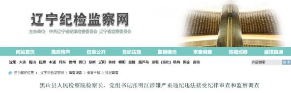 据省纪委监委网站消息,黑山县人民检察院检察长、党组书记张明江涉嫌严重违纪违法,经辽宁省纪委监委批准,锦州市纪委监委指定管辖,目前正接受黑山县纪委监委纪律审查和监察调查。