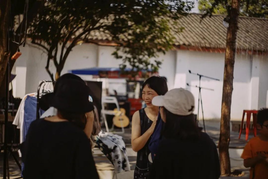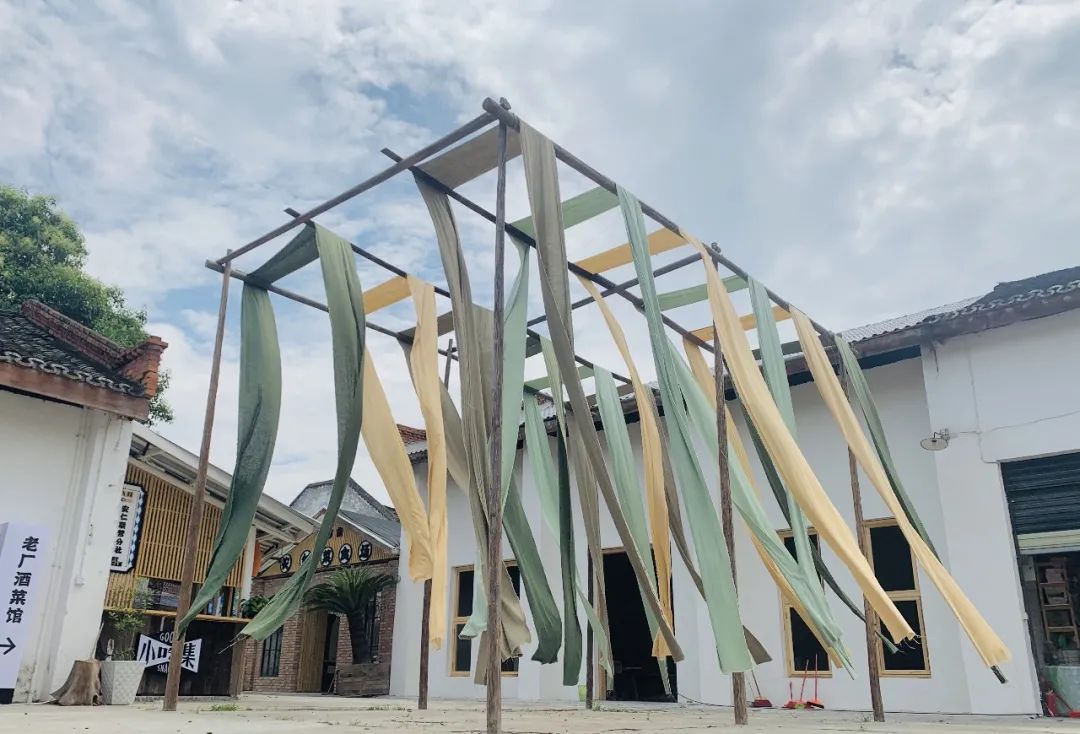 门口左边是裁缝工作室,进门左边是青红染,右边是故市商店餐厅,院子里几棵大树,树下随意摆着桌椅,几排房子皆红砖黑瓦,浓浓工业风,大树旁的水塔上印着七八十年代的大红双喜字。以此院子为中心,包括旁边的几间院子,被大家叫做天福美院。这里聚集了染坊、餐厅、民宿、咖啡馆、木工坊、银饰工作坊、酿酒坊、皮具坊、商店、油豆腐店、花店……主理人来自天南海北。