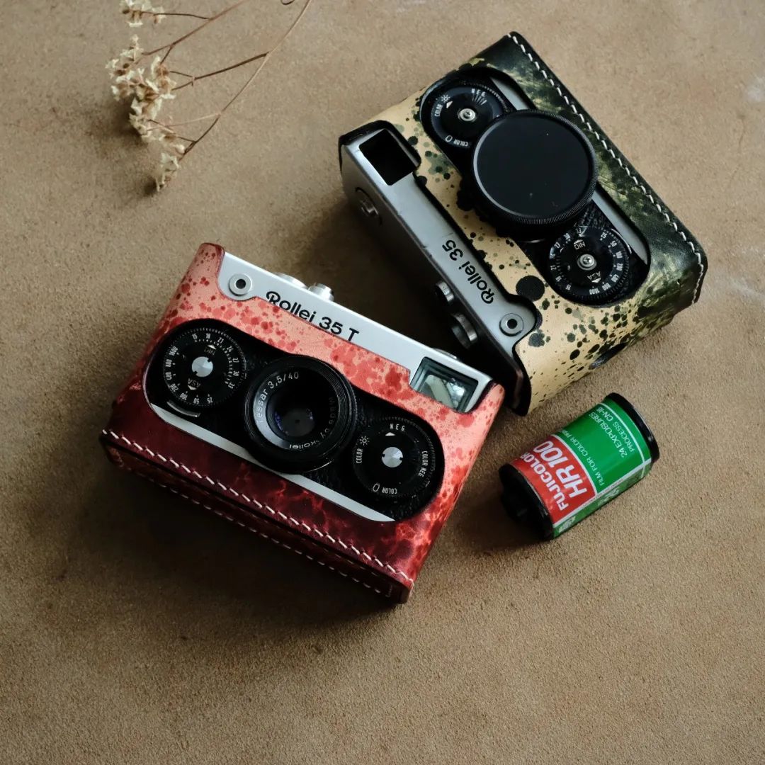 从购入第一台复古相机开始,大鱼如今收了三四十台,最古老的一台100多岁了。有了相机,做皮具的大鱼便自然地为心爱的相机做起了相机套,从第一个相机套在微博上受追捧开始,大鱼便掉进了制作相机套的世界。