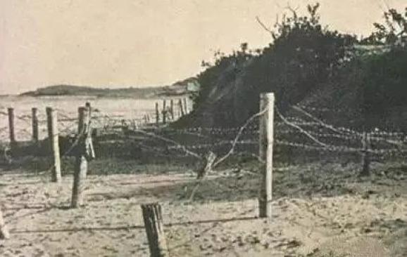 ▲这是五通泥金浦口凤头一带海滩的景象。沙滩上布满了由木桩和铁丝网构成的防御工事。据称,当年日军就是剪断铁丝网从这里登陆的。