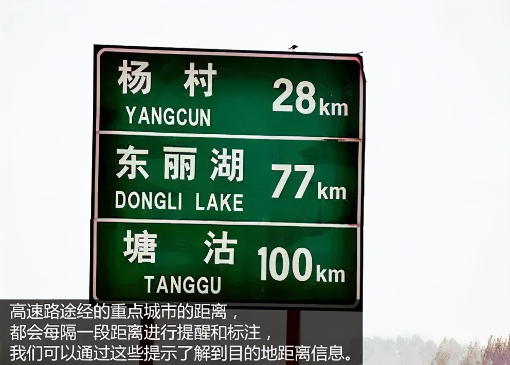 我们所在地点离高速路途经的重点城市的距离,都会每隔一段距离进行提醒和标注,我们可以通过这些提示了解到目的地距离信息,对于到达时间和休整,加油等安排作出提前规划。
