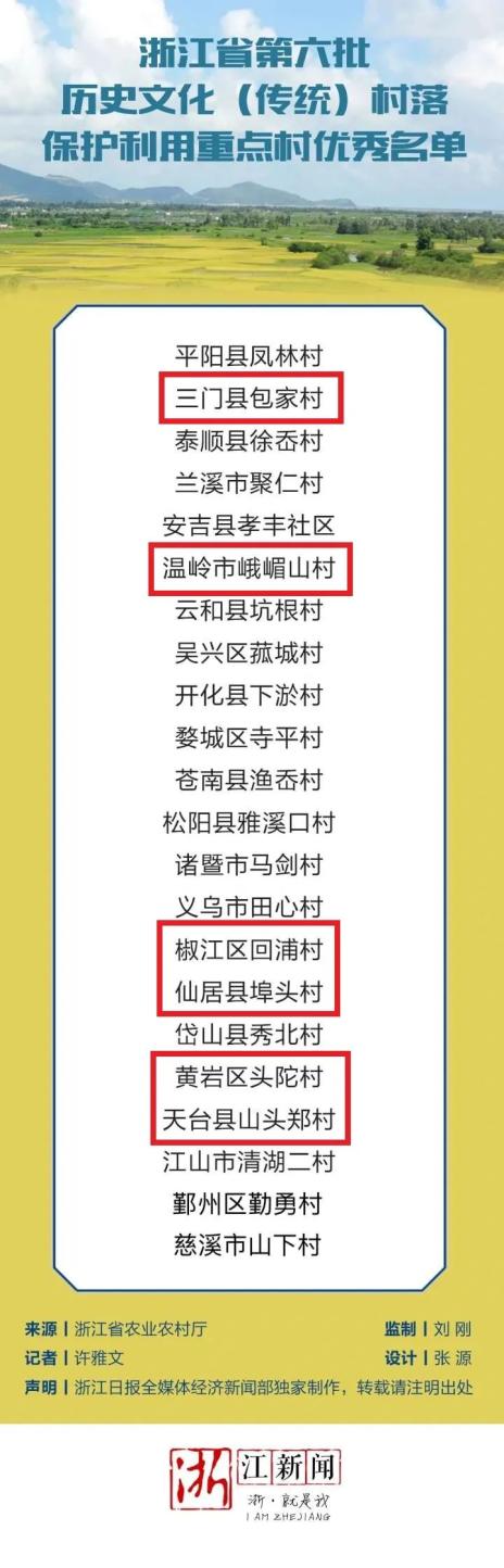 历史悠久的古村落,如何保护和利用一直人们关心的话题。5月10日,省农业农村厅公布第六批历史文化(传统)村落保护利用重点村优秀名单。此次验收的44个重点村中,获得优秀的有22个,其中台州市6个村上榜。