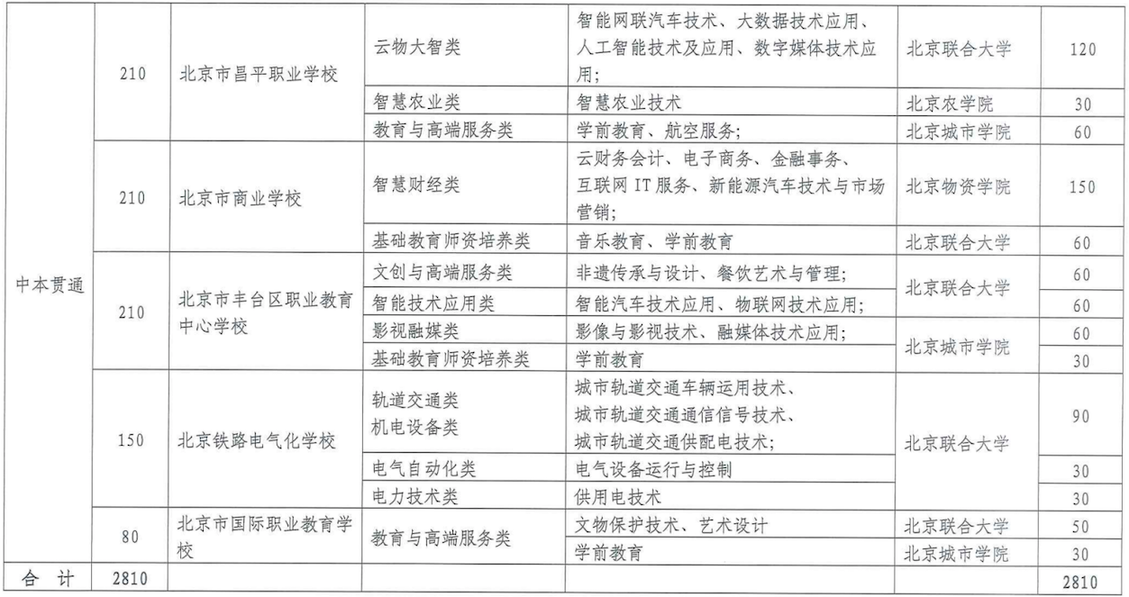招生专业方面,本着“社会需要、学生想学”的原则,结合职业院校的办学特色,撤销一批与首都产业转型发展匹配度不高的专业,新增一批人才紧缺领域的专业。其中如今年最新加入贯通培养项目的职业院校北京交通运输职业学院,今年计划招生180人,涵盖轨道交通类和智慧交通类两大门类的热门专业。北京昌平职业学校则新增了航空服务、智慧农业等热门专业;北京丰台区职业教育中心学校新增了物联网技术、融媒体技术等紧俏专业。