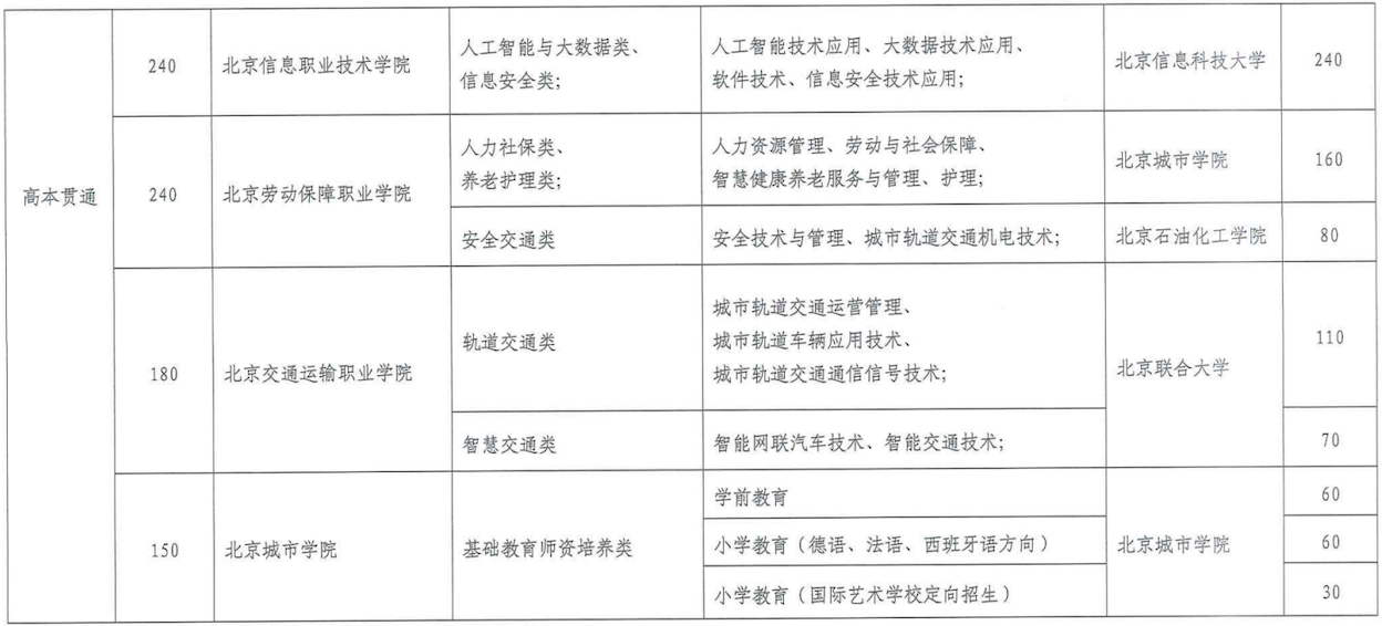 该贯通培养项目于2014年启动,以北京市高水平职业院校为招生单位,遴选合作本科高校,联动行业企业,选择适应未来发展需要、首都产业转型升级的优势专业开展贯通培养。该项目适合有专业兴趣,对自己的成长有规划,有志于走应用型技术培养道路的初中毕业生。学生在熟练掌握一门技能的同时,不经历普通高中也有机会升入本科高校学习。
