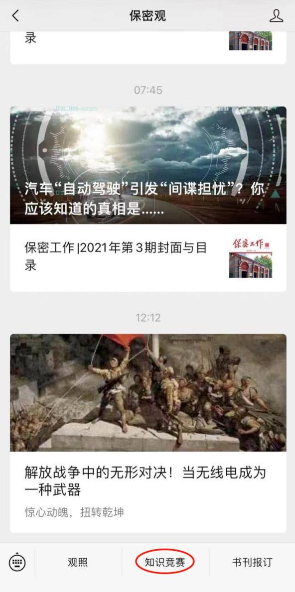 2.参赛方式。关注“保密观”微信公众号或通过手机应用商店安装“保密观”APP后,进入活动页面即可参与竞赛。系统将随机抽取10道单项选择题生成试卷,答题时间为10分钟,完成答题或规定时间结束后,系统自动生成成绩,满分为100分。同一参赛者在活动期间可多次答题,每次重新抽取试题,以本人最好成绩为准。