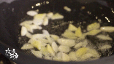 加入20g姜蒜片炒香,等蒜香味溢出后倒入茭白跟肉丝。