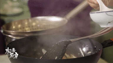 然后加入1勺盐,跟2勺糖,翻炒出香味后,放入半碗水。