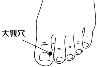 按摩手法:用左、右手食指分别按揉同侧大敦穴,5~10分钟即可。