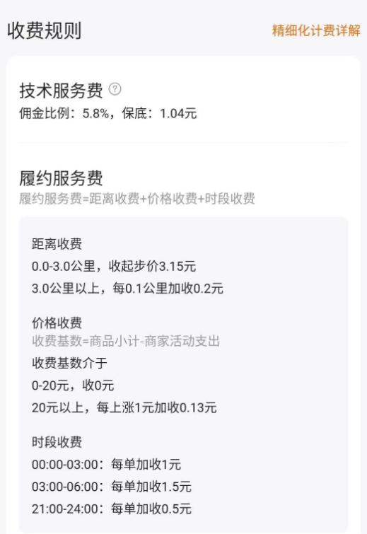 前几天美团把对商户的费率进行了更改,把原来的固定的佣金拆分为较低的技术服务费和履约服务费。对于3公里以上的订单和深夜凌晨等特殊时段,又采用了阶梯式收费。