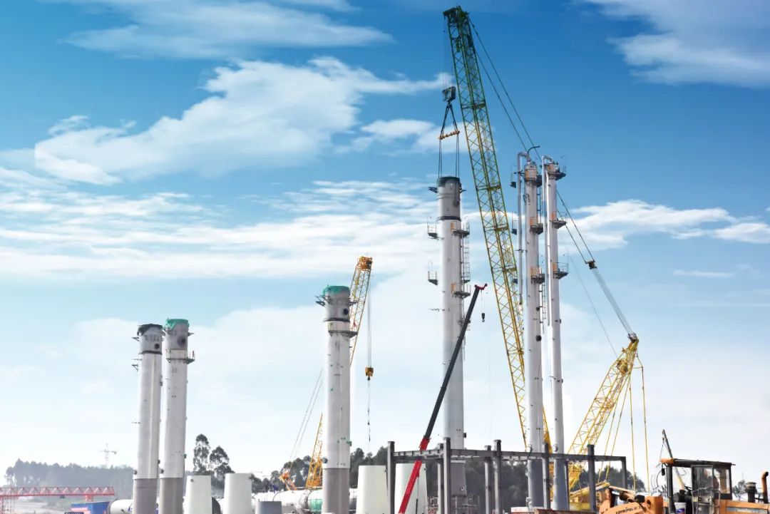 云南通威正在安装中的精馏塔绿色硅产业是云南省打造世界一流“绿色能源牌”重大支撑的绿色新兴产业。近年来,保山市突出工业主导地位,强化工业支撑,抓住水电硅材加工一体化战略机遇,主动谋划把保山建设成为滇西工业重镇。该项目落地,为打造“保山硅谷”打下坚实基础,打通了保山市工业硅-高纯晶硅-单晶硅产业链,补齐了产业链条。项目建成达产后,预计可实现年产值200亿元,税收20亿元,新增就业岗位5000个。