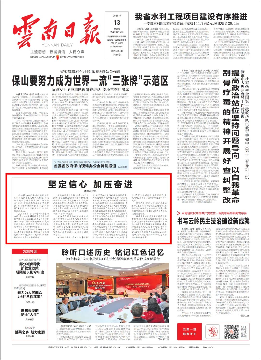《云南日报》头版配发评论员文章