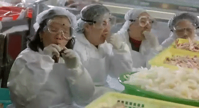 尽管前段时间的确爆出一个泰国的凤爪工厂让工人用嘴脱骨的新闻,但在如今中国,无骨凤爪一般已经完成实现了标准化的操作。一般分为两种,人工和机器。