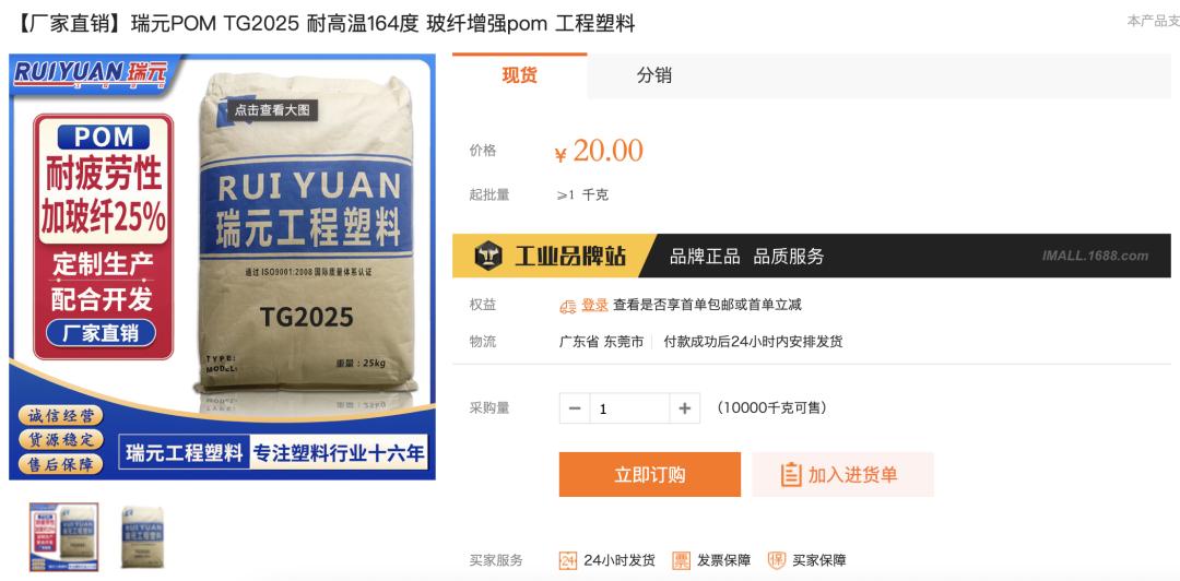 这个问题很好解答。让我们再次登上1688,查一下塑料的价钱——平均20元1kg,我选的还只是普通的工业塑料。