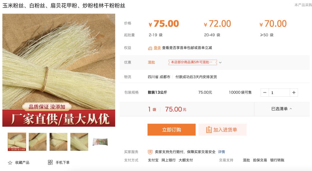 © 1688.com.cn好的,同样的网站,我们搜一下粉丝的价钱,当然也有贵的包装好的,但大袋出售的只要5块钱1kg。