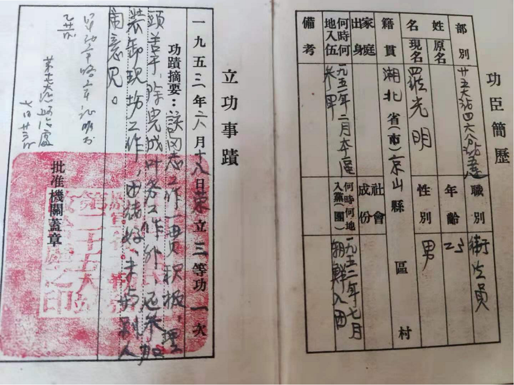 “那叫惨烈呀,一晚上就有很多战友牺牲。我们小组5个人中,就牺牲了1个,我们的一班长被敌机打断了大腿,转运回国救治途中,因流血过多,英勇牺牲。我算是比较幸运的。”罗光明说,“到了新义州,我被分配到中国人民志愿军辎重十四团三营十一连任卫生指导员,主要从事战地救护。我记得我的连长叫陶战国,云梦人。”