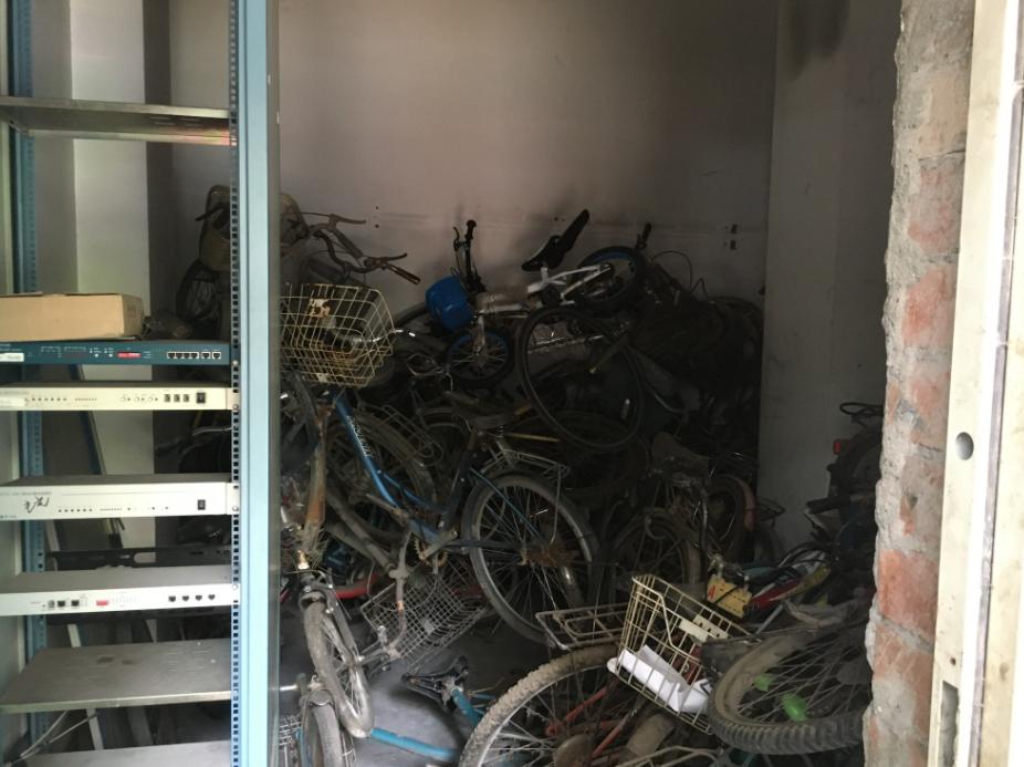 电瓶车进电梯、停放楼道等问题,因为涉及到消防和安全,一直是业内关注的重点。但除了反反复复劝导,物业工作人员能做的并不多,在实际操作过程中,不敢也没有精力天天去说。锦州花园的物业工作人员带记者看了一间堆着二三十辆自行车的房间。里面都是他们去年清理出的堆放在楼道里的自行车。