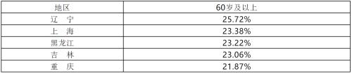 二是全国60岁及其以上的人口,全国最高是辽宁,然后是上海,黑龙江,吉林,重庆