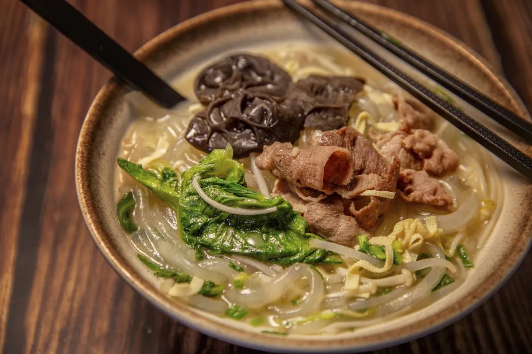 研一的土豆粉,表面上清淡无奇,入口牛肉筋道,木耳爽脆,一口高汤,白胡椒的味道直冲鼻腔,细细品味,香浓不油腻,鲜美不口干,通透且又绵长,猛烈且又持久。