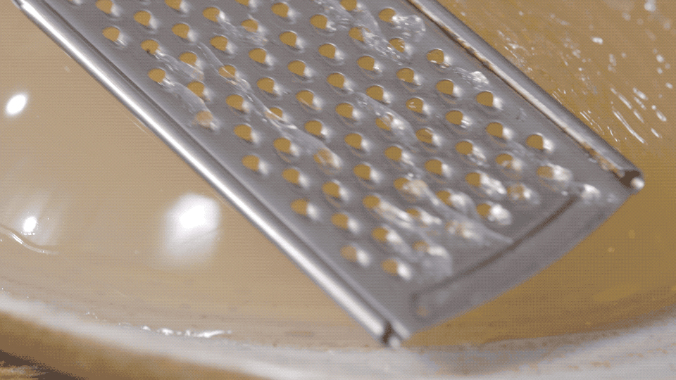 配料全部就位,放点冰块垫底,再拿出祖传的刨子刨下石花膏,加入之前准备好的配料,最后淋上蜂蜜水,完成。