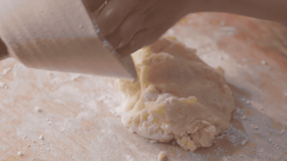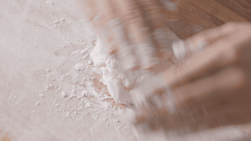 最后揪一个小团,搓成长条后,再一节节切成指甲片大小;