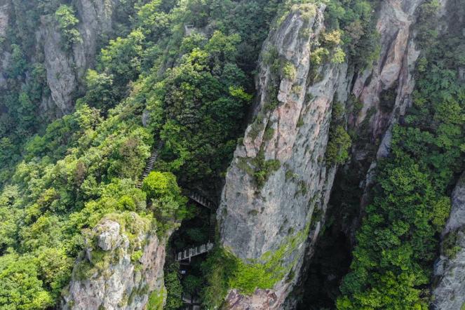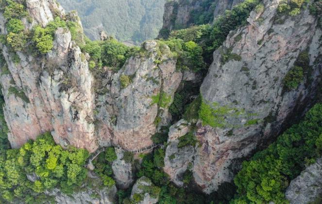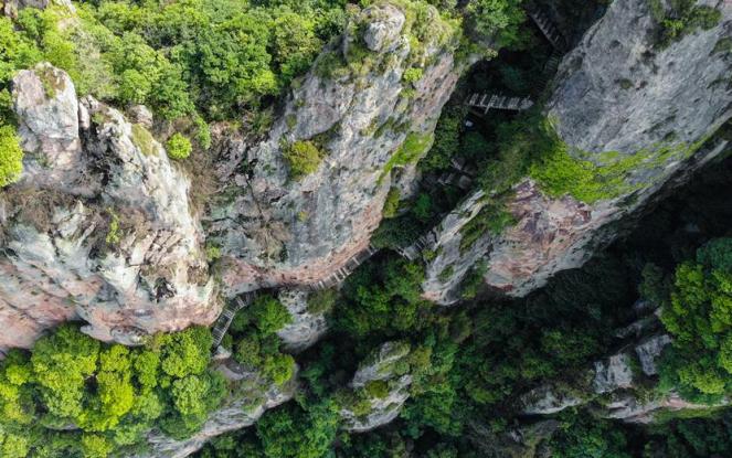 把上山的小路修建在近乎垂直的悬崖峭壁之上,这是哪位神仙想出来的?小编上山的时候只觉得耳边鸟鸣啾啾,山风习习,脚步总是小心翼翼,眼睛也不敢多瞧,没想到,从这个角度看更是觉得惊险刺激!